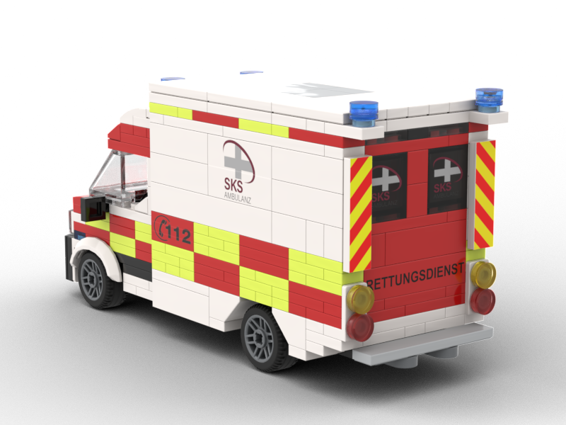 Das Modell - das Klemmbaustein Model ist unserer Informationen nach das einzige am Vorbild orientierte Klemmbausteinset im Minifigurenmaßstab am Markt. Dabei haben wir uns an der Generation 2022 orientiert, da das aktuelle Design ab 2023 mit der Warnschutzbeklebung am Heck noch nicht sinnvoll machbar ist. Der Patientenraum ist bei diesem Modell nicht ausgebaut, da es konstruktive Einschränkungen durch die Verwendung der neon gelben Bauelemente gibt (diese sind derzeit nur von LEGO in dieser Farbe in bestimmten Größen erhältlich). Somit haben wir uns auf ein Display Modell konzentriert.