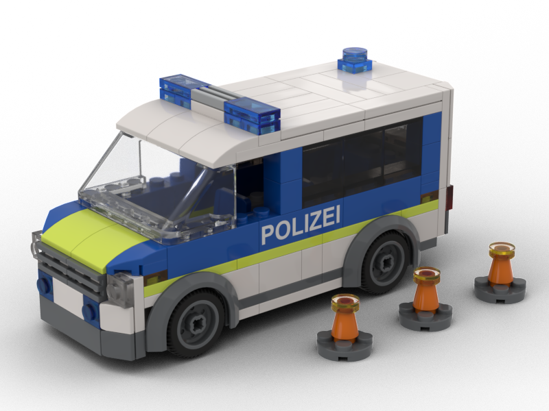 Ein Kleinbus im modernen POLIZEI Design. Damit wir die tagesleuchtgelben Appilkationen umsetzen konnten enthält das Set sogar entsprechende LEGO Steine